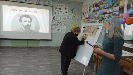 2 место Колпашевская ОСОШ. Они пошагово показали как можно рисовать в стиле пуантилизм - это техника живописи, в которой маленькие, отчетливые цветные точки наносятся узорами для формирования изображения.