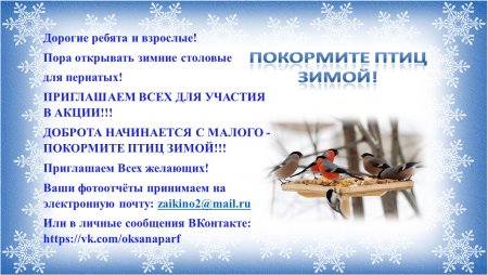 Акция "Покормите птиц зимой, чтобы спели нам весной!"