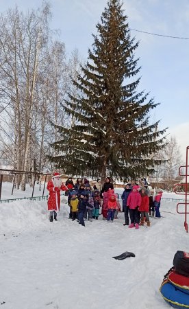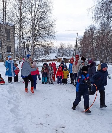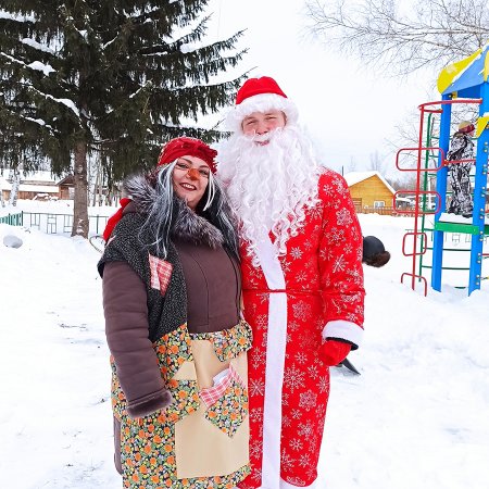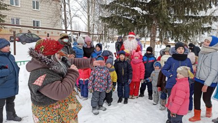 На игровой площадке детей и их родителей ждали сказочные персонажи с игровой программой. Баба яга и Дед мороз катались с ребятами на горке, играли в веселые и увлекательные игры.