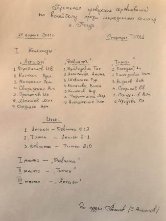 Участвовало 3 команды: «Легион», «Девчата», «Титан». По итогам встречи места распределились следующим образом: