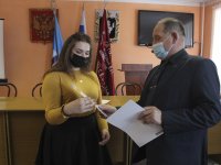 У Анатолия Фёдоровича в этот день была почетная миссия. В знак признания заслуг при оказании помощи людям старшего поколения в уборке придомовой территории от снежного покрова Анатолий Фёдорович вручил благодарственные письма районного совета ветеранов волонтёрам Денису Черных, Максиму Турксу, Андрею Матвеенко, Даниле Зенкову, Наталье Шайбель, Валерии Лопатиной; грамоту – руководителю – специалисту по работе с молодежью Оксане Сергеевне Парфирьевой.