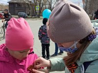 Георгиевской называют ленту, состоящую из 3 черных и 2 оранжевых полосок. Ленточку-Бант надевают на левую сторону груди. День Победы как дань памяти мужеству тех, кто сражался в Великой отечественной войне. Цель акции — создание символа праздника — Дня Победы. Этот символ — выражение нашего уважения, благодарность к ветеранам войны, гордость за их подвиг, почитают память погибших - дань памяти павшим на поле боя. Всем тем, благодаря кому мы победили в 1945 году.