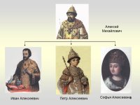 В 1682 году, после смерти старшего сводного брата Фёдора Алексеевича, 10-летний Петр и его брат Иван были провозглашены царями. Оба брата, один из-за возраста, другой из-за нездоровья, не могли участвовать в борьбе за власть. И фактически управление взяла на себя их старшая сестра царевна Софья Алексеевна. В 1689 году Софья была отстранена от престола, и власть перешла к Петру I, а управление страной доверено его матери и дяде Л. К. Нарышкину. Софья Алексеевна - царевна, старшая сестра Петра I Нарышкин Л.К. - дядя Петра I