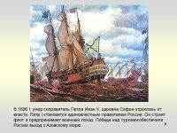 Во время своего правления Петр Первый продолжает войны с Османской империей и Крымом. Дальнейшие действия Петра I были направлены на создание мощного флота. Внешняя политика Петра I того времени была сосредоточена на поиске союзников в войне с Османской империей. С такой целью Петр отправился в Европу, где он заключал политические союзы, изучал кораблестроение, устройство, культуру других стран. В результате путешествия царь захотел изменить Россию.