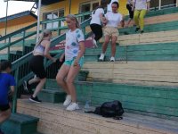 У занимающихся была задача: добежать от «ГМЦ» до ДЮСШ (главный стадион), пробежать по трибунам 15 раз, 3 подхода (подняться до самого верха и спуститься – это 1 раз и т.д.) и последнее задание, пробежать 3 круга.
