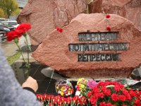 - В Москве траурный митинг ежегодно проходит у Соловецкого камня — гранитного валуна, который привезли с Соловецких островов, из тех мест, где некогда был Соловецкий лагерь особого назначения, и установили 30 октября 1990 года на Лубянской площади перед зданием ВЧК — ОГПУ — НКВД — КГБ — ФСБ[11] (в 2002 году митинг был запрещён мэрией столицы). Соловецкий камень стал местом многочисленных акций протеста по разным поводам.